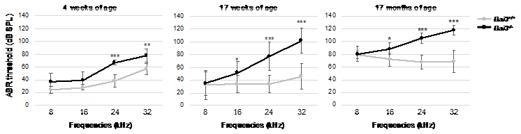 Bai3遺伝子を欠くマウスは難聴を呈したことから、難聴研究のモデルマウスとして応用することで、今後の難聴発症機構の研究や治療方法の探索が発展することが期待されます。