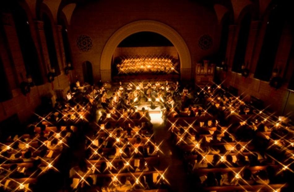 ・舞台上で厳かに灯が受け渡されるキャンドルサービス