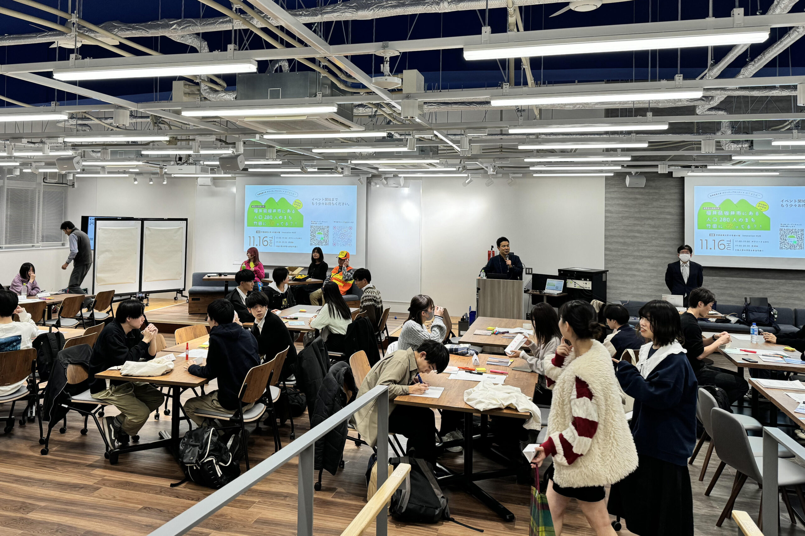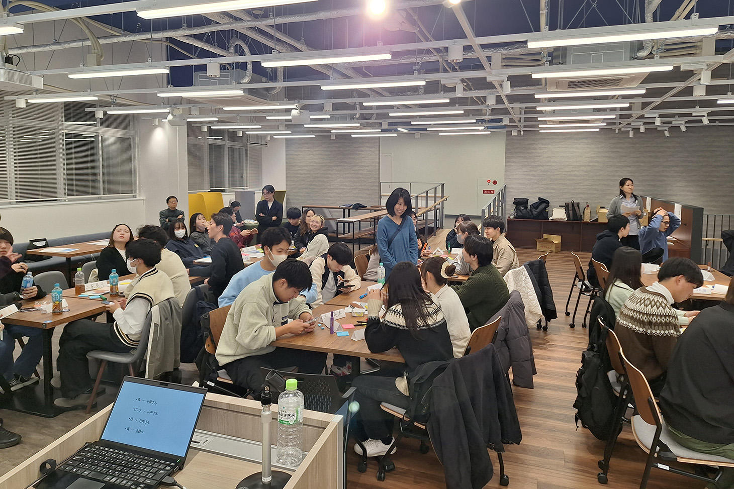福井県・株式会社 応用芸術研究所と共催する地方を学ぶ学生交流会は7月に第一回を開催しており、今回は本学ボランティアセンターが実施している「ボラトーク」(ボランティア活動や市民活動に取り組む人たちの話が聞けるトークイベント)とのコラボ開催となる。将来地元を盛り上げたい学生や他大学の知り合いを作りたい学生などが学内外から集まり、自由に交流する場となった。