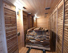 (木材低温乾燥装置や多様な木工機械器具の導入。全学の教職員が閲覧できる間伐材データベースを整備)