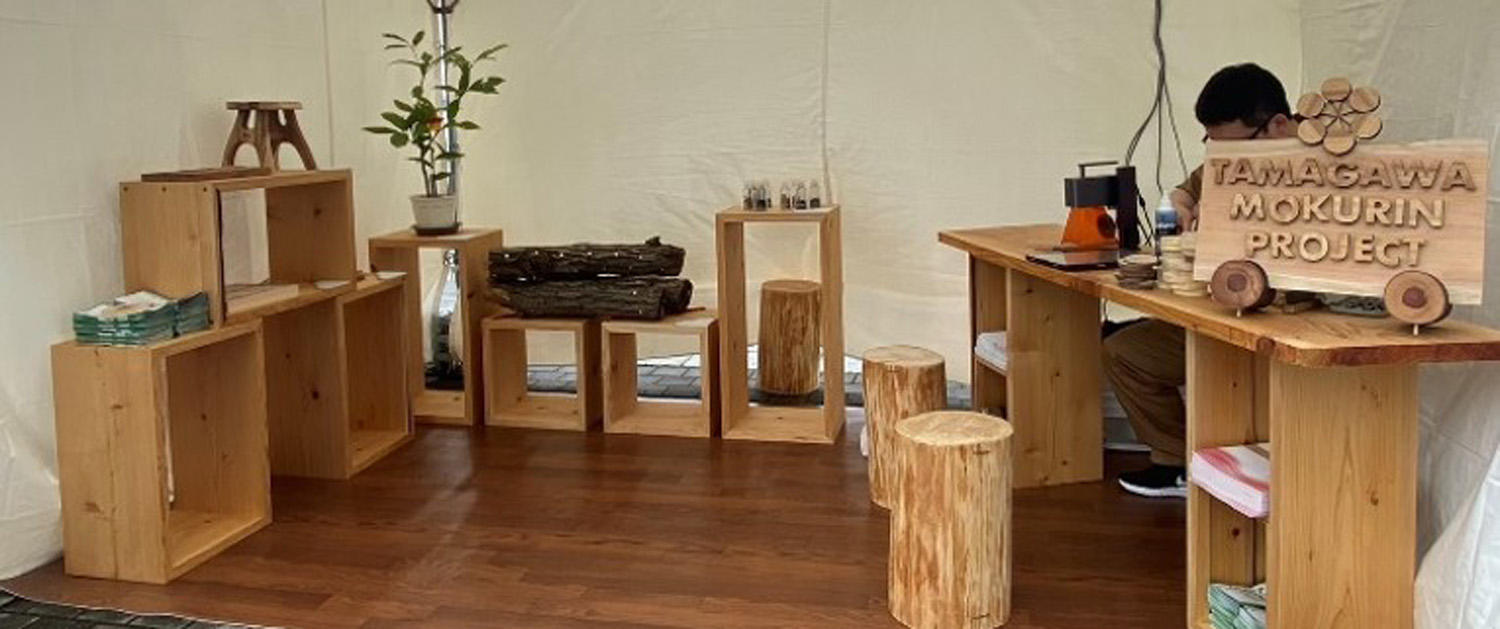 これらの木々の中には、大きく成長し更新時期を迎えたことから、間伐による管理が必要なものが多くあった。こうした間伐材を有効活用するべく2018年度から「Tama Treeプロジェクト」がスタート。主に中・高・大学生による木工作品の制作や、学内の装飾部材に活用している。