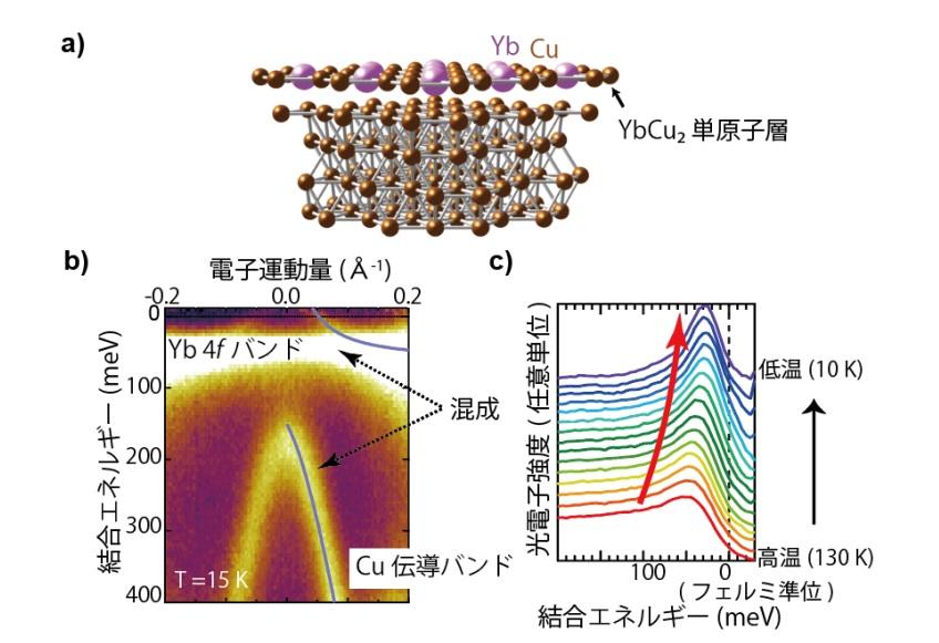 ・タイトル:”Two-dimensional heavy fermion in monoatomic-layer Kondo lattice YbCu₂”