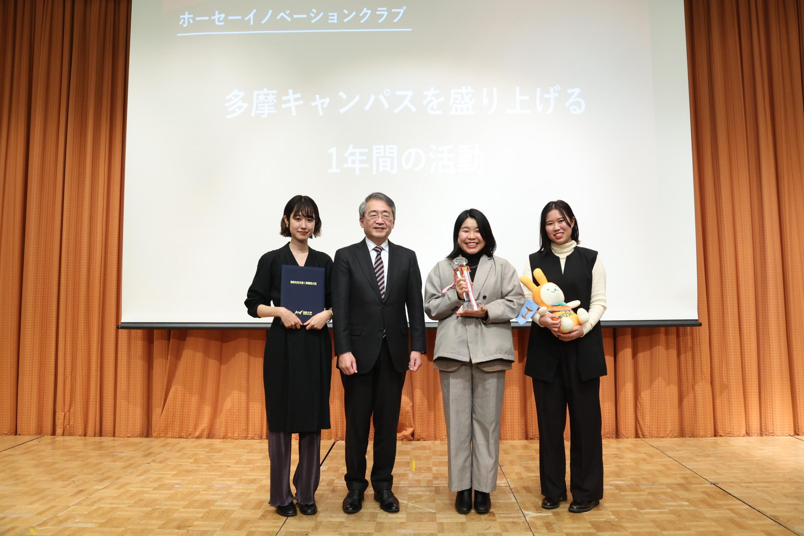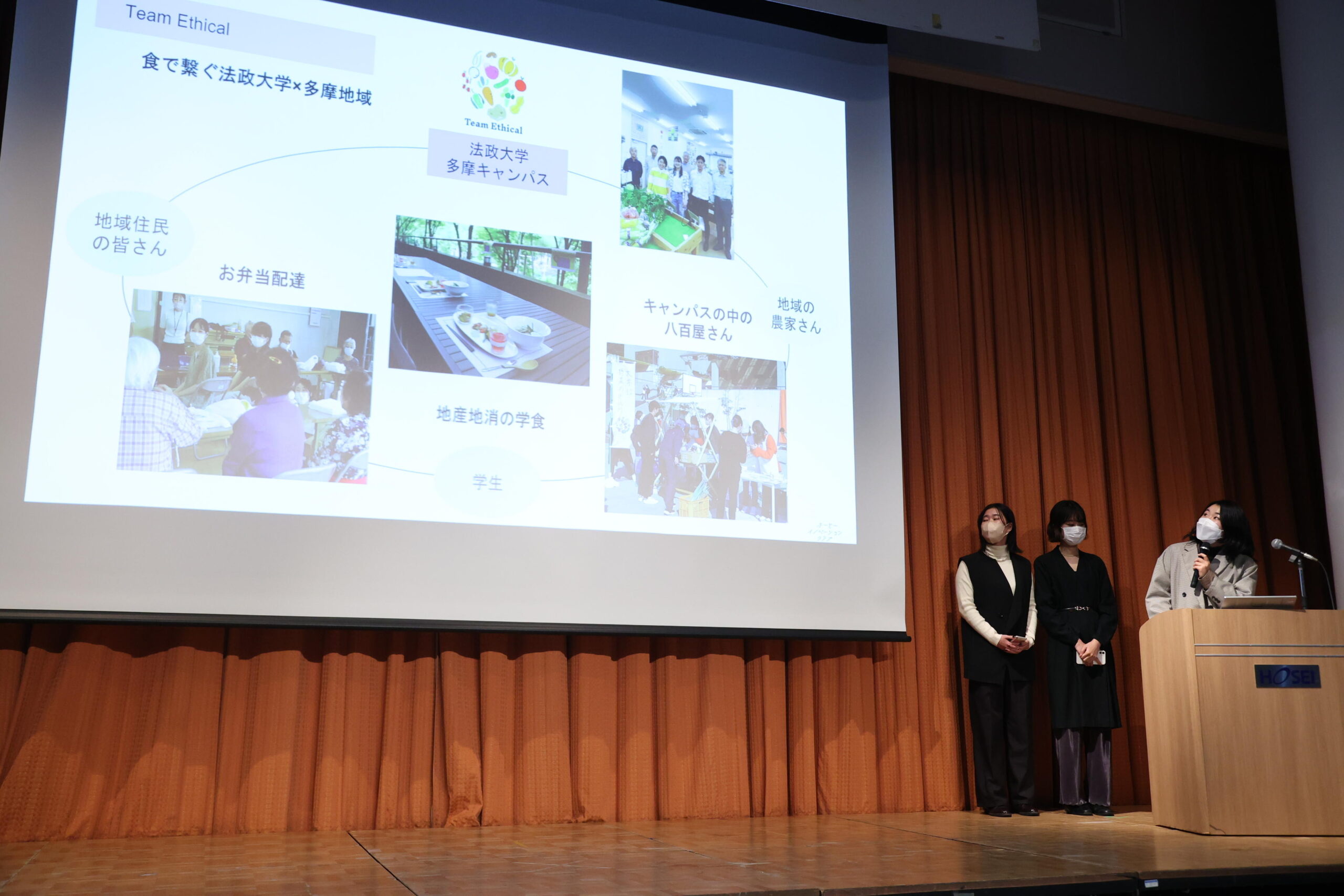 2022年度は「多摩キャンパスを盛り上げる1年間の活動/ホーセーイノベーションクラブ」が大賞を受賞しました。ホーセーイノベーションクラブは、大学や周辺地域、地域住民、教員、学生と協力しながら、大学生が楽しいと思える空間を自分達で創り出し、①Team Ethical(食に興味のある人)②Team Fashion(洋服に興味のある人)③Team Magazine(雑誌に興味のある人)④Team 地域通貨(地域交流やそのシステムに興味のある人)(※)の4つのグループに分かれて多摩キャンパスの素敵な要素を自分達で増やしていく活動をしています。