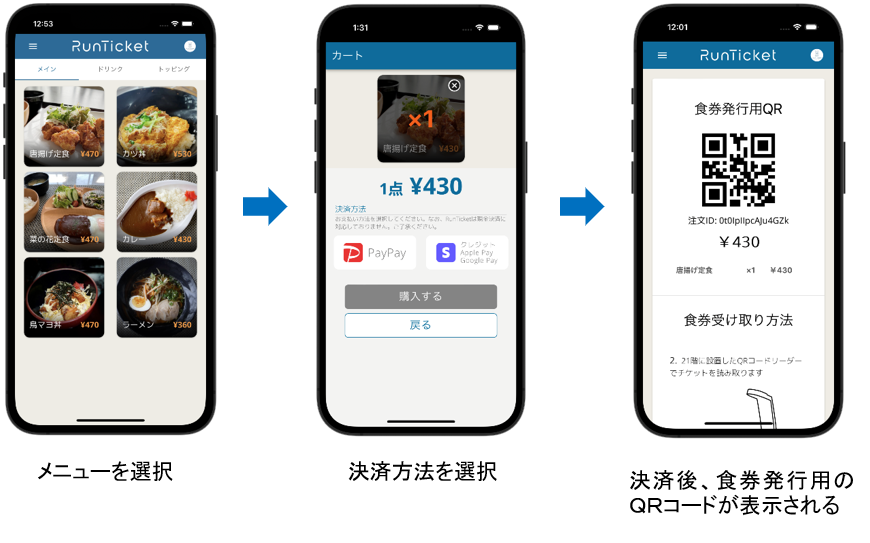アプリの名称「RunTicket」は、ランチや走る(速い)から着想しました。