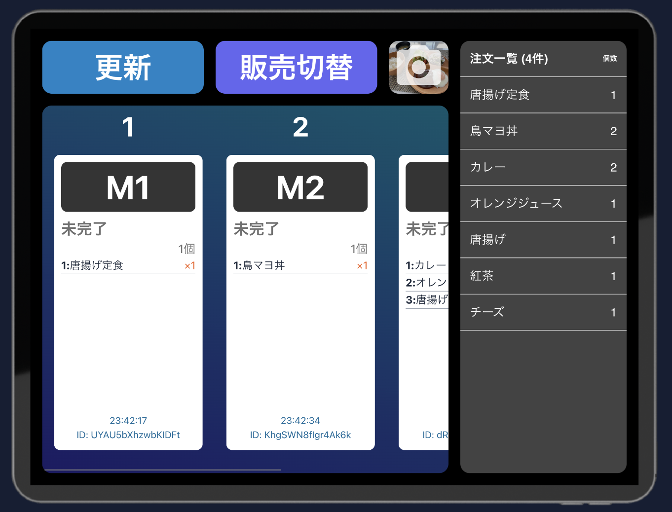 注文すると厨房に設置している端末に通知されます。注文ごとに管理番号が割り振られ、数量やメニューがリアルタイムに表示されるので、調理や配膳の段取りにも役立ちます。全体的な注文状況が分かるので、食材の無駄をなくすことにもつながります。