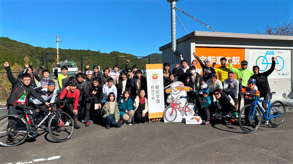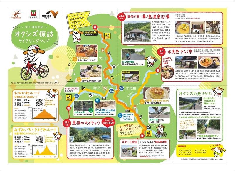 当日、静岡SAの『自転車の駅』にはサイクリスト24名が参加し、本学サイクリング同好会と山田ゼミナールを中心に制作したオクシズ・サイクリングマップを手に取り、静岡SA近隣の清沢・大川・水見色地区のサイクリングを楽しみました。また同日、SAの来客者へポケットテッシュのノベルティと高速道路のマナーガイドを配布し、高速道路のマナーアップを目指しました。