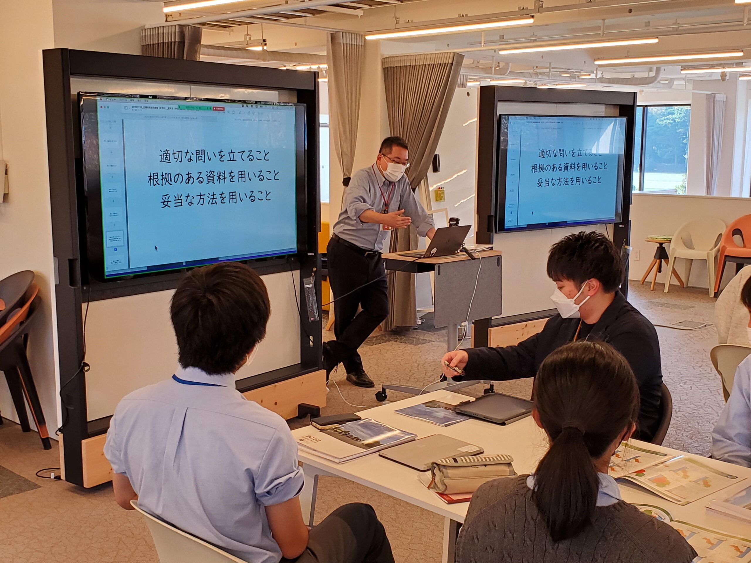 双葉町で見聞して感じたことを振り返り、課題(リサーチ・クエスチョン)を設定して、その答えを探究することで最終発表に繋げます。F-ATRAs山根氏がオンラインでフォローアップします。本学グローバル・リベラルアーツ学部の学生もサポートで講座に参加します。