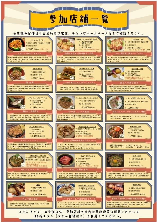 【参加店舗】 居酒屋よっちゃん国分寺本店、アトレスタダイナー、kitchen RK、そば処豊年屋、魚菜 海月、Grill Kitchen笑人、日本料理 天松、ビアカフェ ガンブリヌス、炭火酒場 鶏眞、萬月、チャイニーズレストランオトメ、イタリア料理ボンジョルノ、大人の食堂シロボシ、伊太利亜酒場 chulu亭、海鮮居酒屋あめんぼ、織田島酒店、焼肉三代目もんぞう、参百圓食堂 日吉小町(順不同)