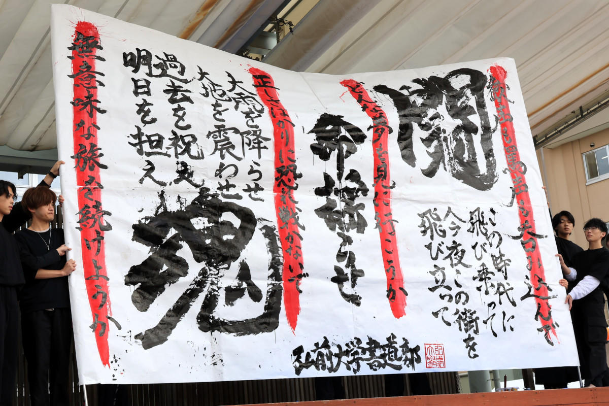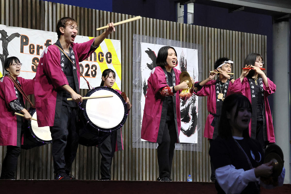 「Opening Festival」では、福田学長の開催宣言・挨拶ののち、弘前市の外川吉彦企画部長、学祭本部実行委員会委員長を務める家上凌弥さんの挨拶で総合文化祭が開幕。つづいて書道部による「書道パフォーマンス」や、「熱唱カラオケ大会2023 ~予選~」「よさこい弘大」「Performance Show 2023」などのイベントが行われ、大いに盛り上がった。