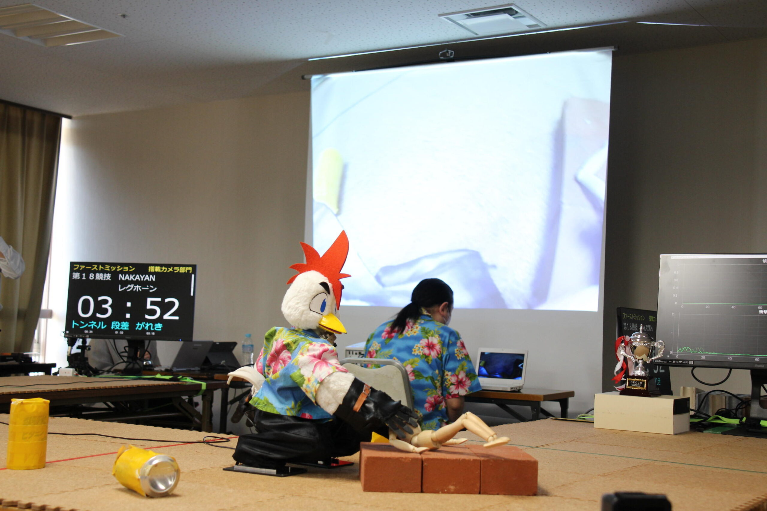 参加者はヒト型ロボットを遠隔操縦して、約4m×2mのフィールド内で「トンネルくぐり」「段差乗り越え」「ガレキ除去」「要救助者搬送」の4つのタスクを順に実行。競技には目視で操縦する「目視部門」と、搭載カメラの映像のみで操縦する「搭載カメラ部門」がある。