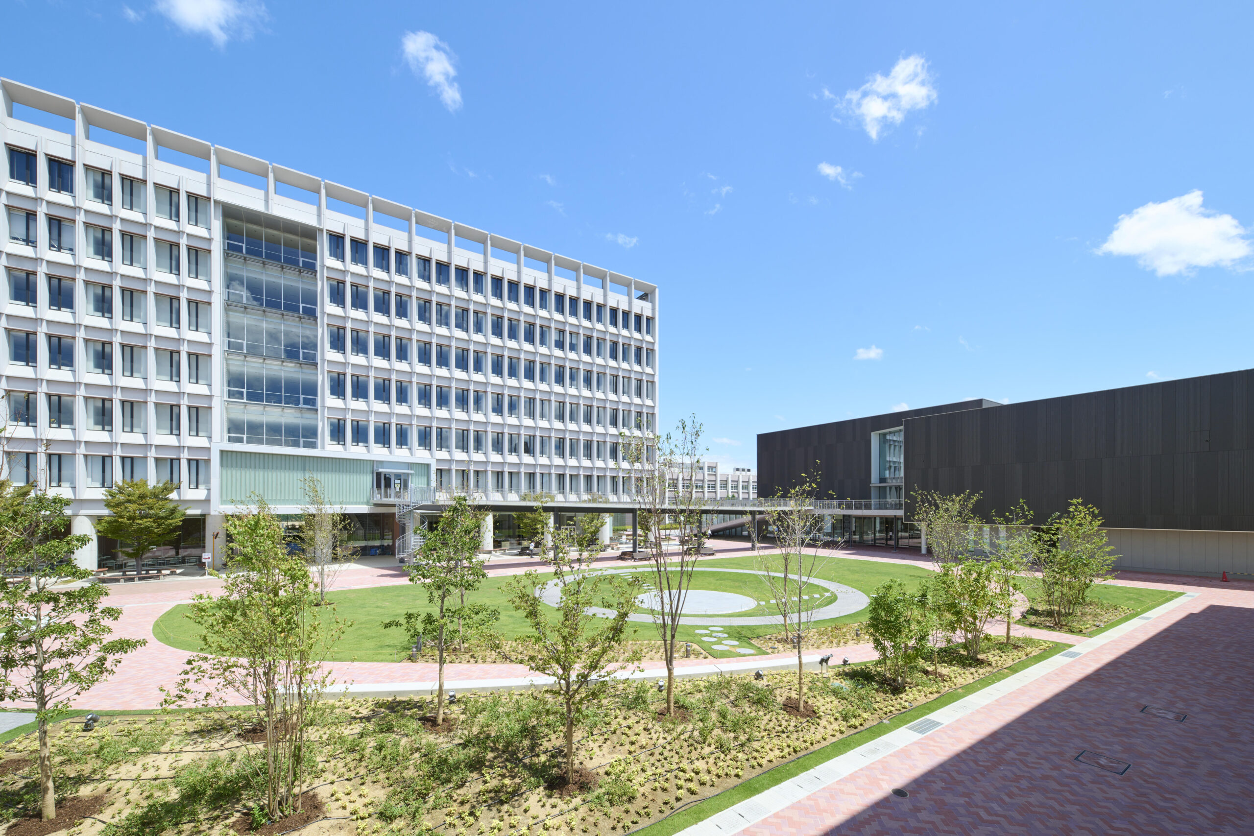 また、2021年に同大の学生を対象として行われた広場コンペティションでの最優秀賞作品をベースに設計された広場は、2023年8月に完成。完成までには、受賞学生を中心とした学生有志が施工会社とワークショップを行い、自分たちの広場の実現に向けて意見を出し合った。