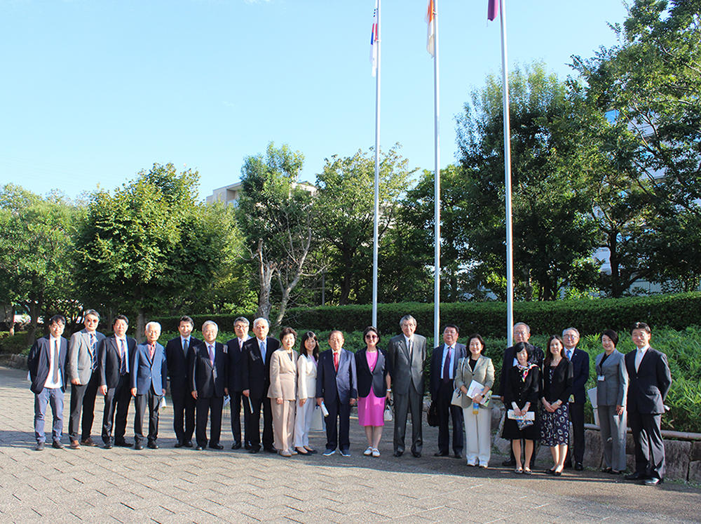 李大淳(Lee Dai Soon)名誉会長(元韓日協力委員会会長/慶南大学校理事長)、魯讚容(Ro Chan Young)会長(靈山大学校理事長)を始めとする16名の編成で、福井一光学長始め幹部教職員と懇談しました。