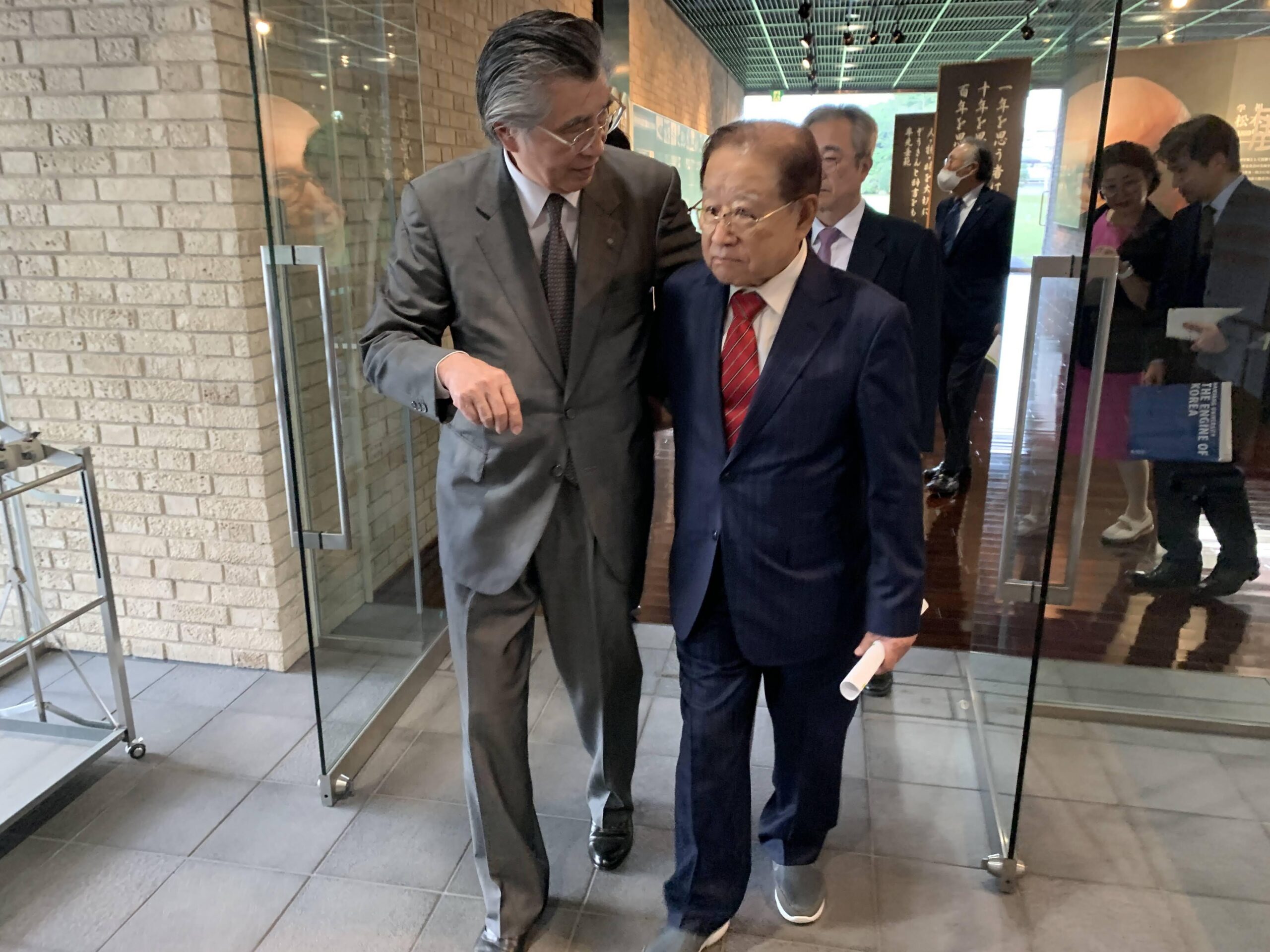 また、展示サロンの創設以来の歴史写真を見ながら、李名誉会長から、「戦災に遭いながら、勇気をもって学校建設と取り組んだあの時代の人々は本当に素晴らしかった」と、深い同情の想いを寄せていただきました。