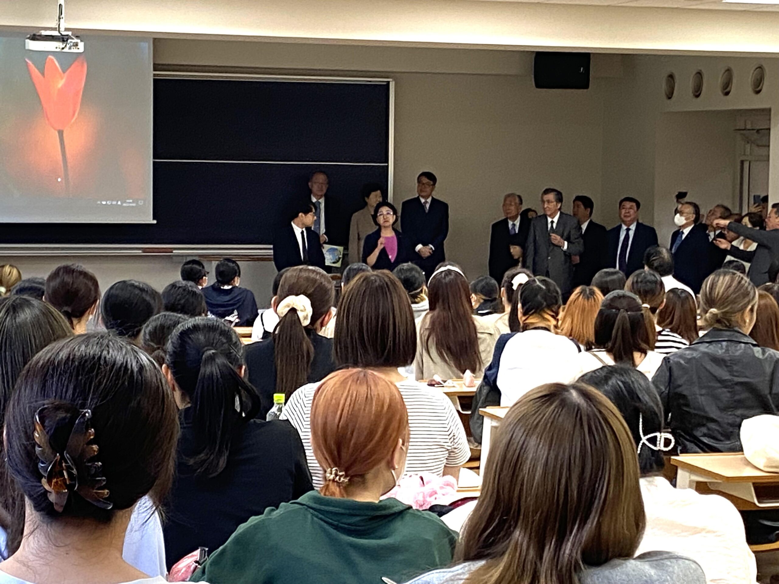 授業中に立ち寄った教室では魯会長から「韓国でも鎌倉女子大学が素晴らしい大学であることは聞いています」とのエールが送られ、学生たちの熱烈歓迎を受けました。教育使節団にとっても日本の学生たちとの交流は、今回の訪日で初めてのことで、大変有意義な体験であったようです。