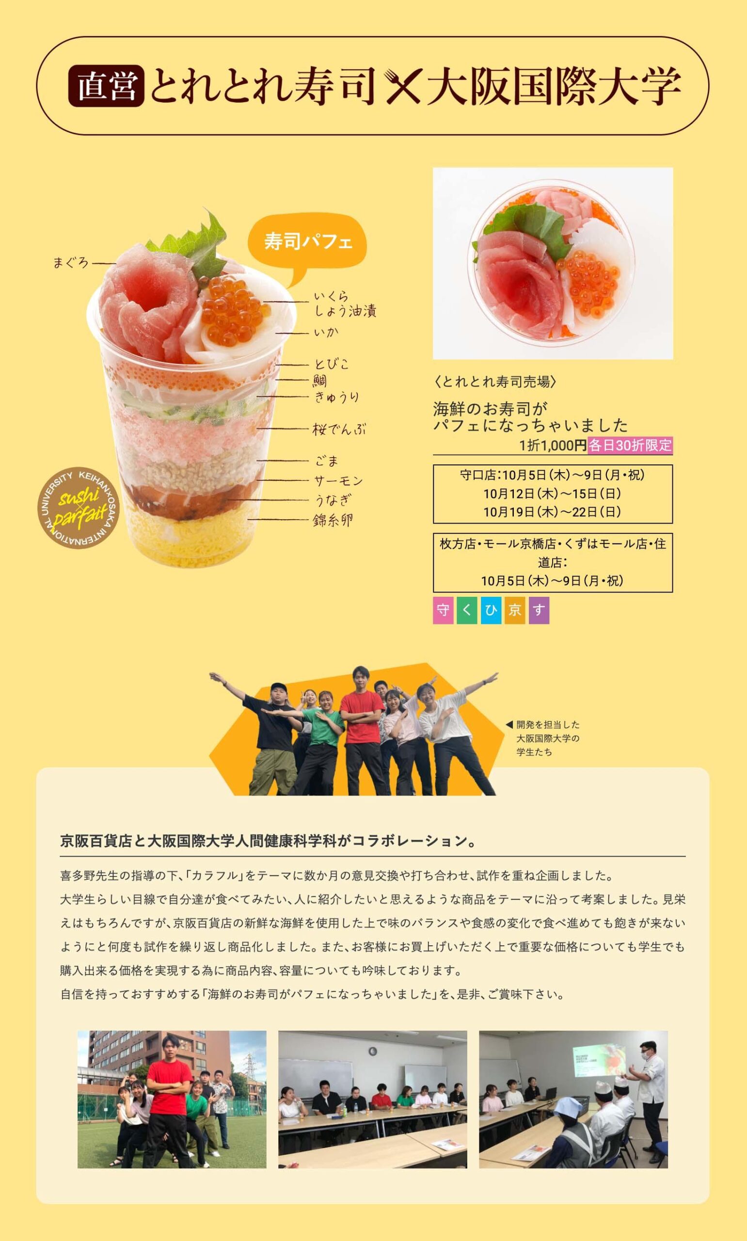 学生達が考案した「寿司パフェ」が京阪百貨店「秋の大感謝祭特別企画」で販売 — とれとれ寿司×大阪国際大学