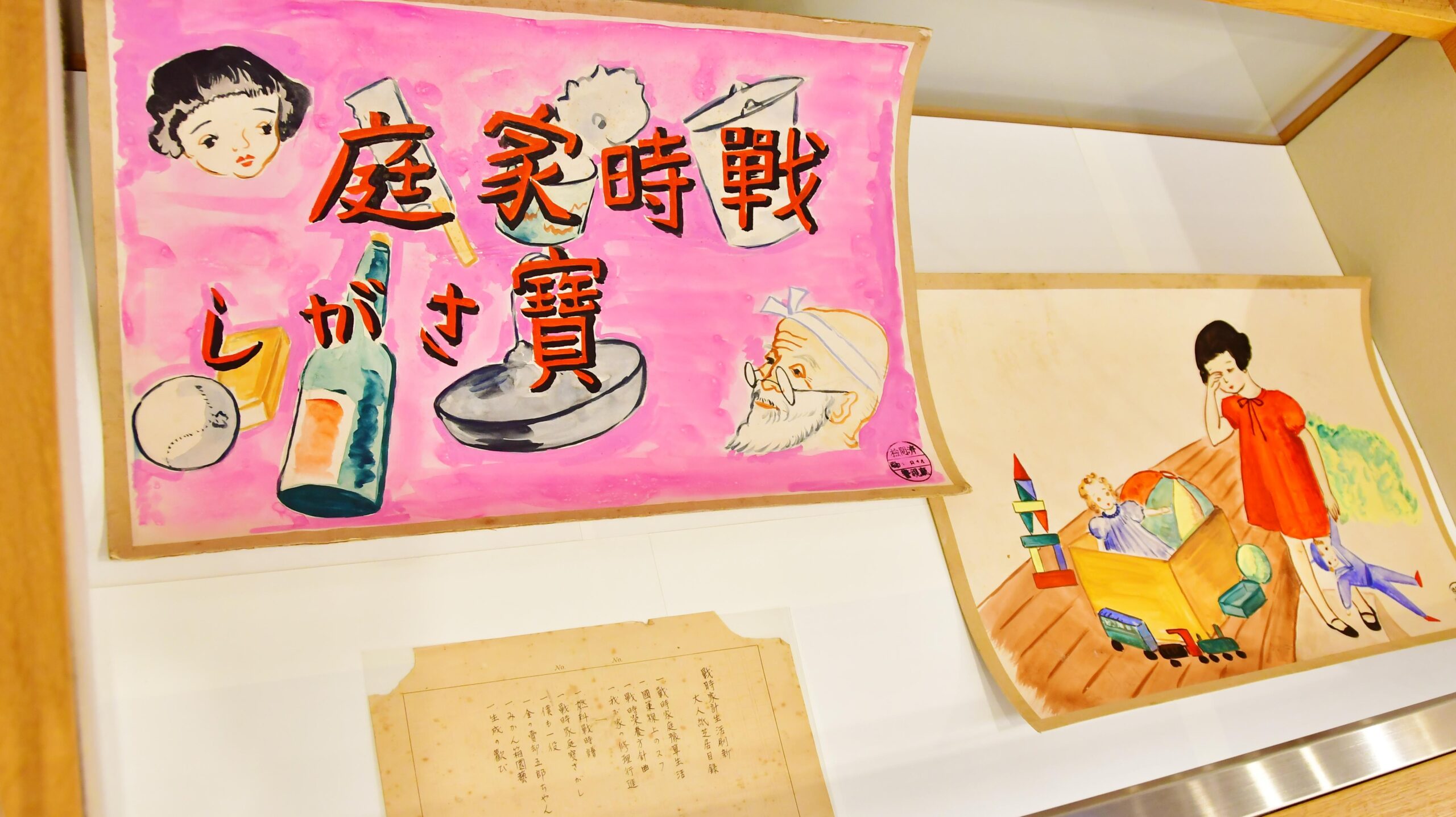 本展では、第1回生(長女)たちが学生たちとともに作りあげた学園生活の様子を、大人紙芝居やエプロンモンペといった資料と共にご紹介します。