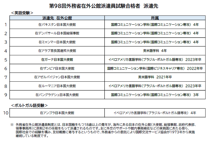 第98回外務省在外公館派遣員試験 神田外語大学から10人の学生・卒業生が合格 ~累計85カ国232人の合格実績~
