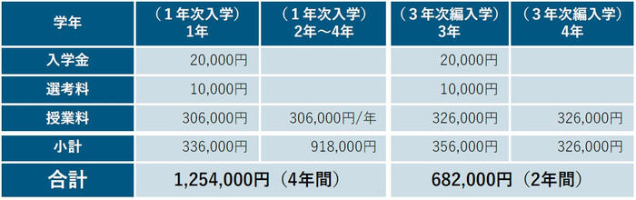 自ら苦学した経験をもつ創設者 世耕弘一の「学びたいものに学ばせたい」という理念に基づき、「建築学部(通信教育課程)」では学費を安価に設定しています。1年次入学の場合、4年間の学費の総額は1,254,000円、3年次編入学の場合、2年間の総額は682,000円です。