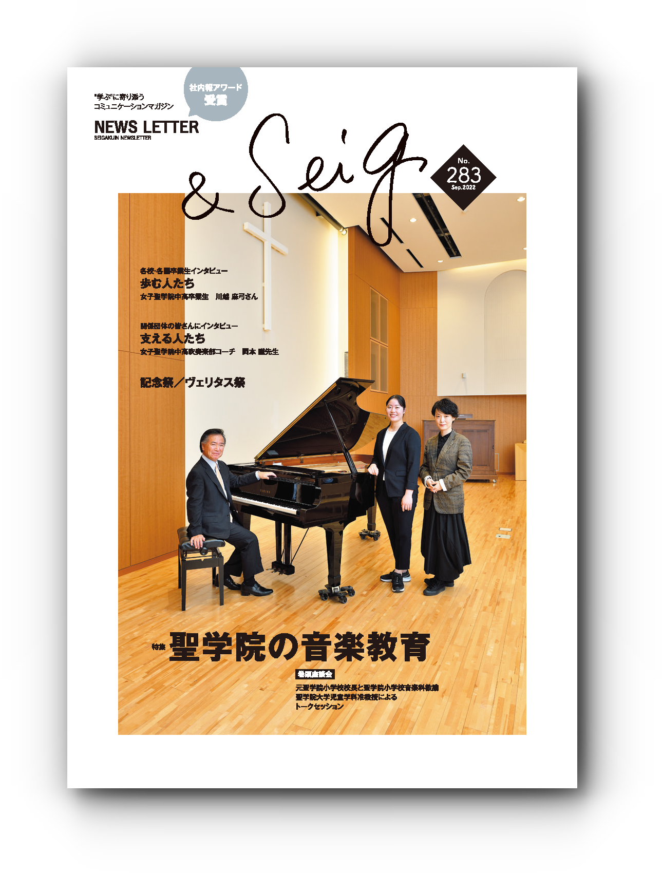 2023年度は「紙社内報部門1冊子(20ページ以上)」において、広報誌No.283(2022年9月号)が「シルバー賞」を受賞しました。「聖学院の音楽教育」をテーマに掲げ、目まぐるしく変化する現代において、あらためて音楽教育の意義とは何かを問いつつ、本学院の実践について取材しました。本誌は10月19日(水)に表彰およびナレッジ共有イベントにて他の受賞作品と共に紹介される予定です。「社内報アワード」には2021年に「ブロンズ賞」、2022年に「ブロンズ賞・シルバー賞」を受賞しており、3年連続の受賞となります。