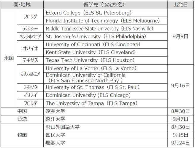 ●近畿大学国際学部生539人が、米国、中国、台湾、韓国での留学に出発