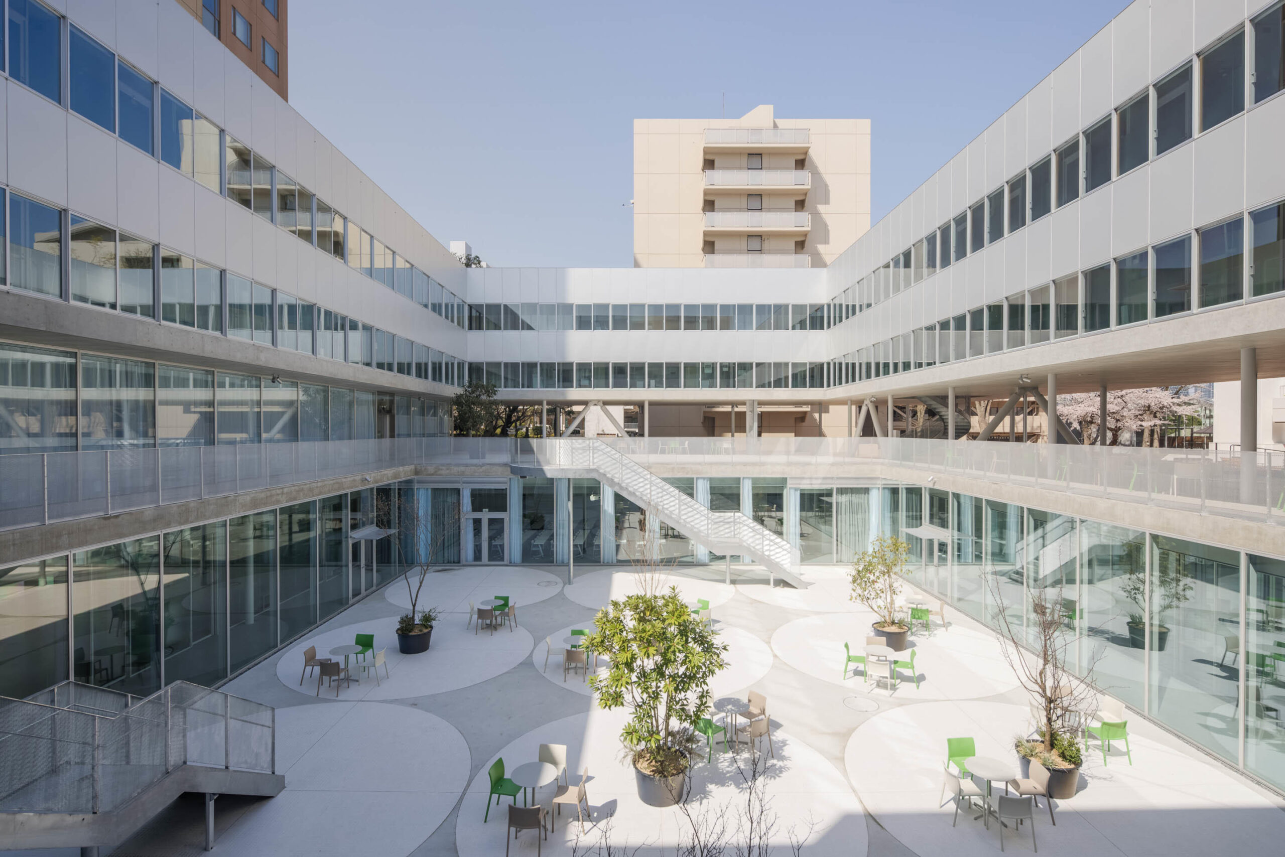 低層の建物をキャンパス内にバランスよく配置することで新旧の建物を周辺環境と調和させながら、既存樹木を活かしてキャンパスを緑のネットワークでつなぎ、都心の中で建築とランドスケープが融合したキャンパスの実現を目指しました。