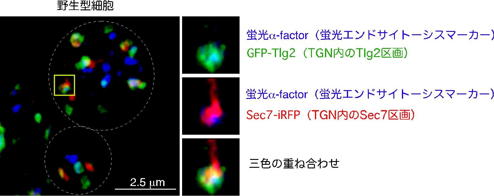 ●今回、細胞内小胞輸送のモデル生物である出芽酵母において、トランスゴルジ網(*1)の特定領域にエンドサイトーシスの選別区画があることを明らかにしました。