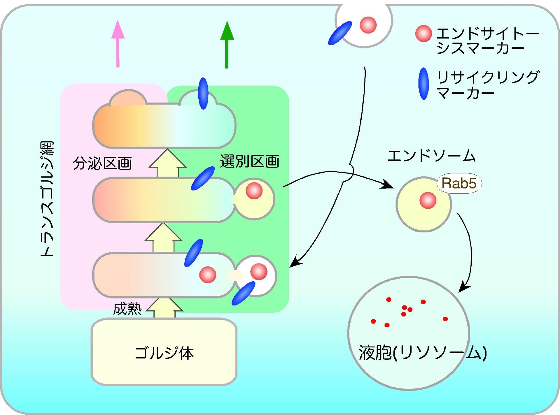 エンドサイトーシスの新しい細胞内輸送経路を発見~トランスゴルジ網の特定領域にエンドサイトーシスの選別区画が存在する~