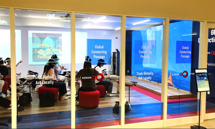 甲南大学(兵庫県神戸市/学長:中井伊都子)は、2024年4月に「グローバル教養学環」を新設し、学部等連係課程制度を活用した「グローバル教養学位プログラム“STAGE”」を開設いたします。グローバル教養学環では、「4年間で2ゕ国へ留学するダブル留学」や「協定を結ぶ海外大学や長期留学中の学生も参加する形でのゼミやプロジェクト学習」の実施等、4年間を通して世界とつながった学びを行うことが特徴です。新施設「Global Connecting Passage」は、このSTAGEの学びにも応じてデザインされ、壁面一面に設置された大型LEDビジョンや大型スクリーンを用いて臨場感ある海外大学とのCOIL型学習拠点や世界の最新のニュースに触れられる「BBC WORLD NEWS」ラウンジとして機能します。