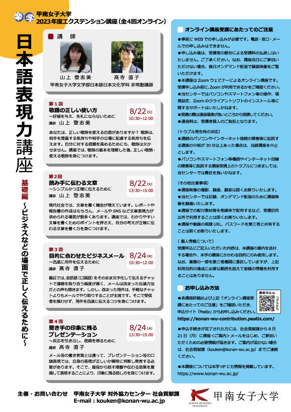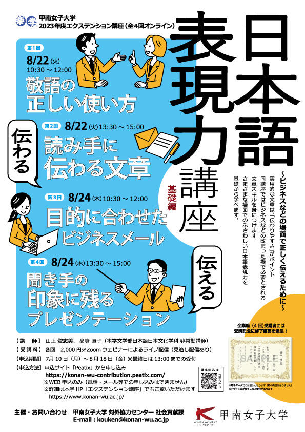 ビジネスなどの場面で正しく伝えるために –「日本語表現力」を基礎から学び直せるオンライン講座開講【甲南女子大学】