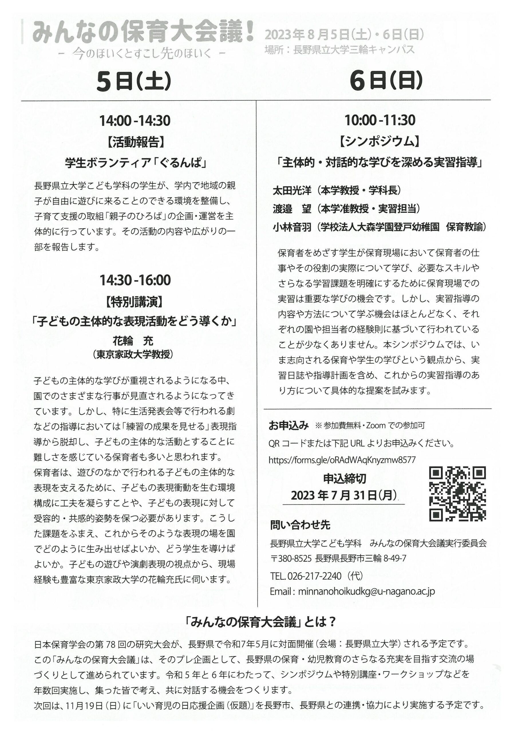 【長野県立大学】8月5日・6日に「第1回みんなの保育大会議~今のほいくとすこし先のほいく~」を開催 — 信州の保育・幼児教育のさらなる充実を目指す交流の場づくり