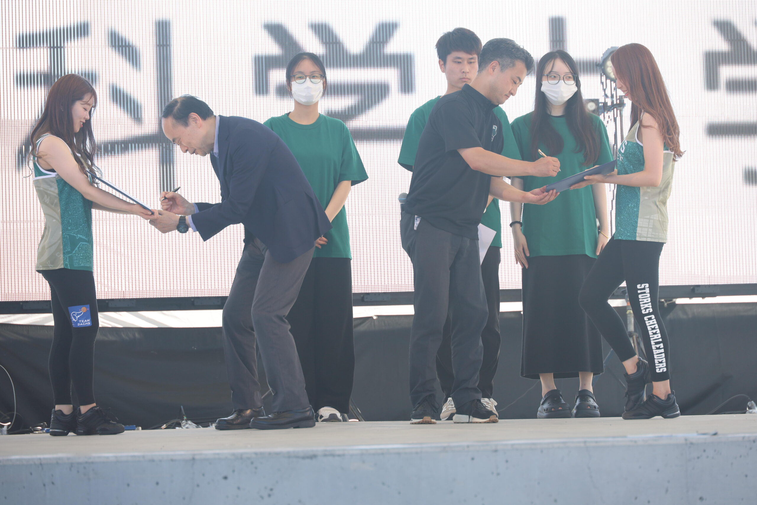 学生には、本学で学ぶマーケティングのチカラを使って、ホームゲームでの満員御礼を目指して、チャレンジを続けてもらいたいと思います。大学としてもそんな学生たちを全力で支えてまいります。