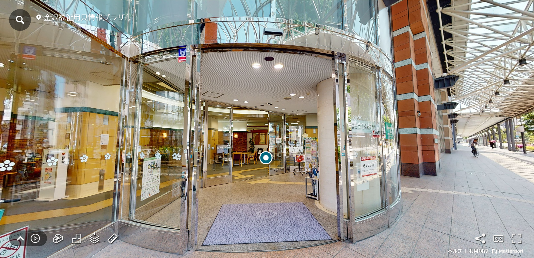 この度、金沢工業大学・クラスター研究室のご協力により、金沢福祉用具情報プラザ(以下、プラザ)の館内を見て回ることができるバーチャル見学が完成しました。これにより、外出に不安を感じている方やプラザに行く時間がとりづらい方にも、時間を気にせず、どこからでも、ゆっくりと館内を見学して頂けます。また、世界中に映像を発信することで、地元の方だけではなく幅広い方々にもプラザをPRすることができ、来館者数のアップにつながるのではと期待しています。