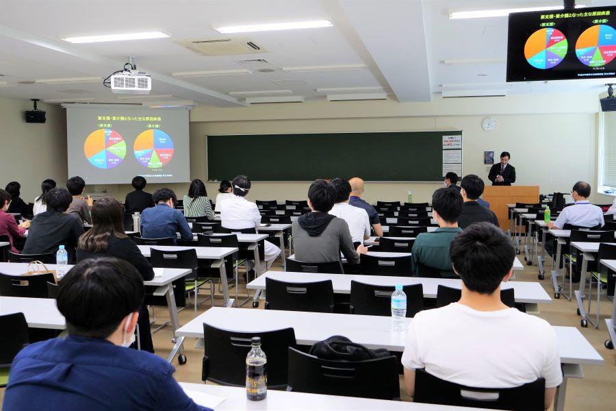今回のBoot Camp1では、講師に東京大学大学院医学系研究科老年病学准教授の小川純人先生を招へいして特別講演会を開催しました。講演テーマは「高齢者疾患・フレイルの特性と薬物療法の可能性」で、高齢者疾患とフレイルの特性および対処法について、小川先生から時にユーモアを交えながら最先端の臨床現場の状況や豊富な最新データを紹介していただきました。