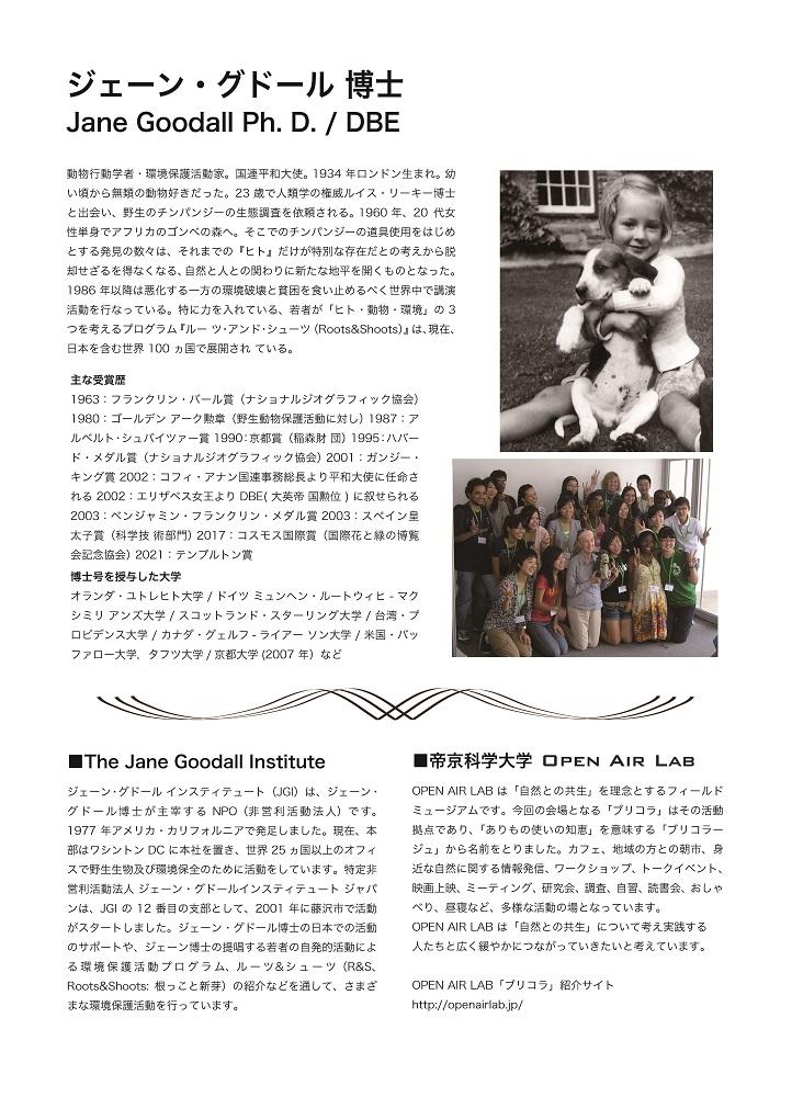 ※ジェーン・グドール・インスティテュート・ジャパンへの寄付を設定したチケットを用意しております。申込時にご検討ください。