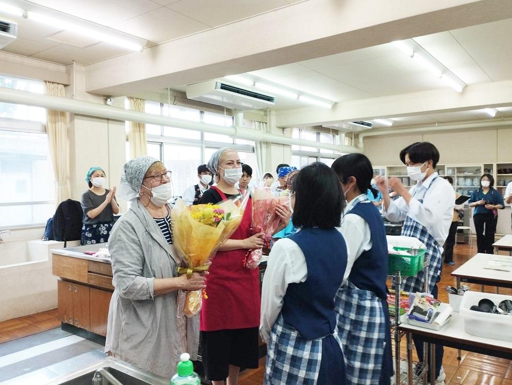 完成した料理を口にした生徒らは、初めて口にするウクライナ料理に「美味しかった!」などと感想を述べながら、オルガさんやテチヤナさん、息子のジェーニャ君との交流を深めた。オルガさんは「戦争以外のウクライナのことを知ってもらえて嬉しかった。また食べたくなったら、呼んでください!」と笑顔で語った。