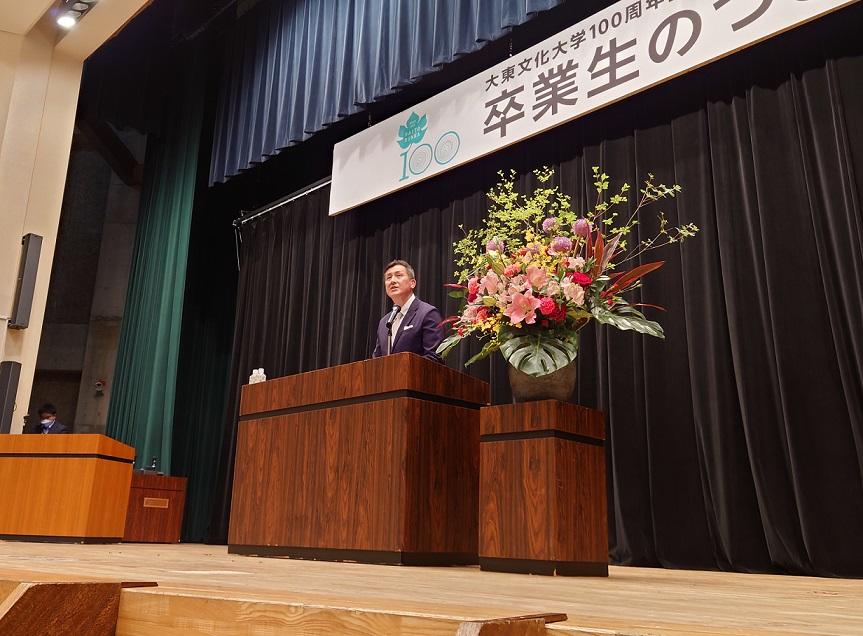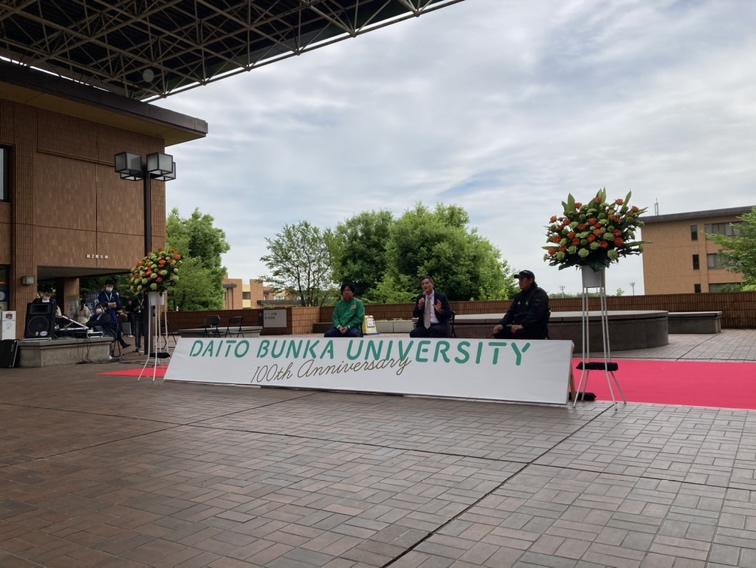 当日は、東日本大震災および新型コロナウイルスの影響により卒業式を開催できなかった2010年度・2019年度の卒業生・修了生を対象とした「卒業生のつどい」をはじめ、キャンパスツアーや学部・学科ごとの企画、100周年記念グッズの販売などが行われたほか、高橋進学長、陸上競技部男子長距離の真名子圭監督、ラグビー部の酒井宏之監督の3者によるトークセッションでは、大東スポーツの魅力が語り尽くされた。