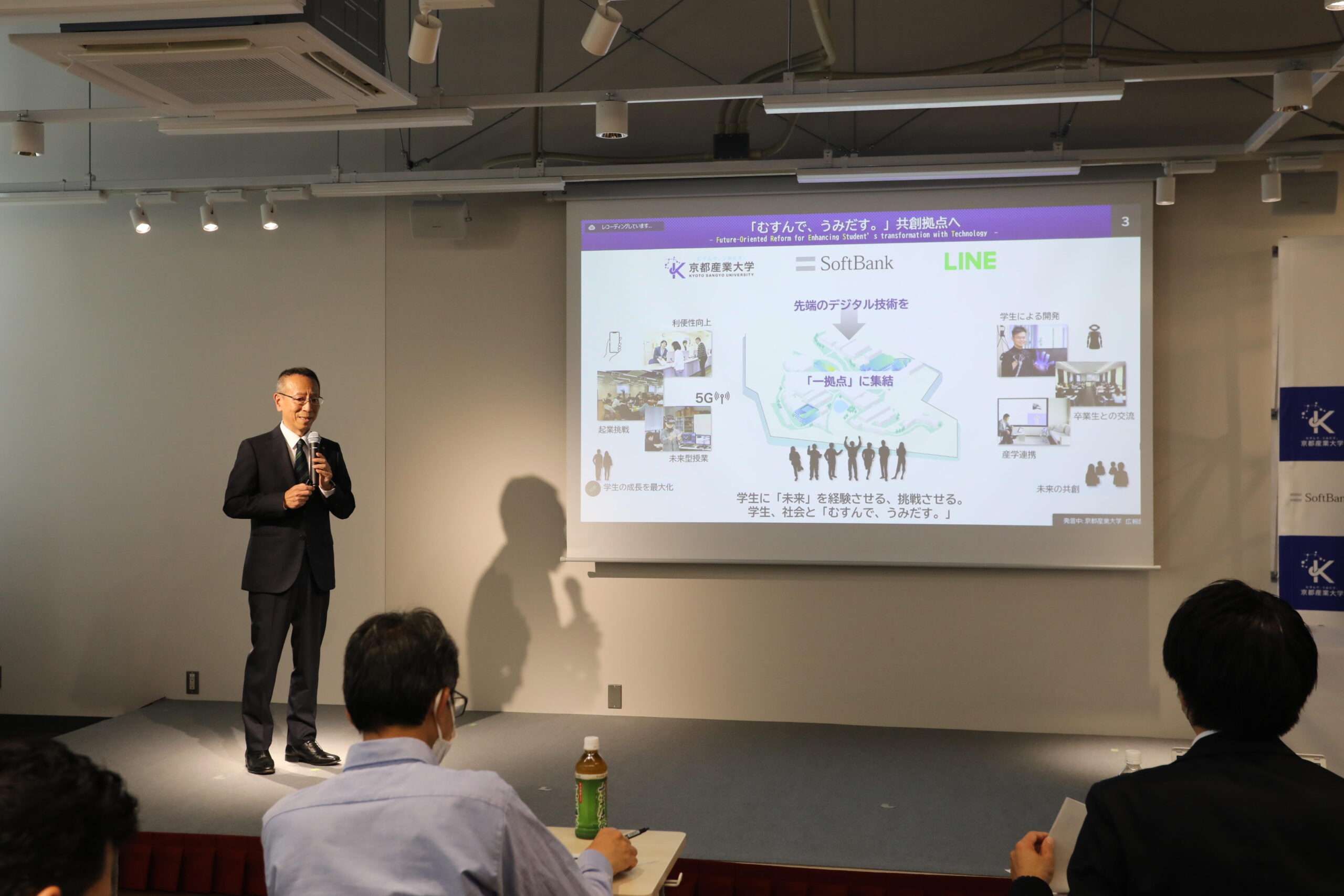2023年5月26日、京都産業大学は、5GやAIなどの先端技術を活用して社会課題の解決に取り組むソフトバンク株式会社(以下、SB社)および月間利用者数9,500万人のユーザー基盤を誇る(2023年3月末時点)LINE株式会社(以下、LINE社)と、大学DX(デジタルトランスフォーメーション)の推進を図るため、「先端技術を活用した新しい学生生活の実現・研究に関する包括連携協定」(以下、本協定)を締結した。