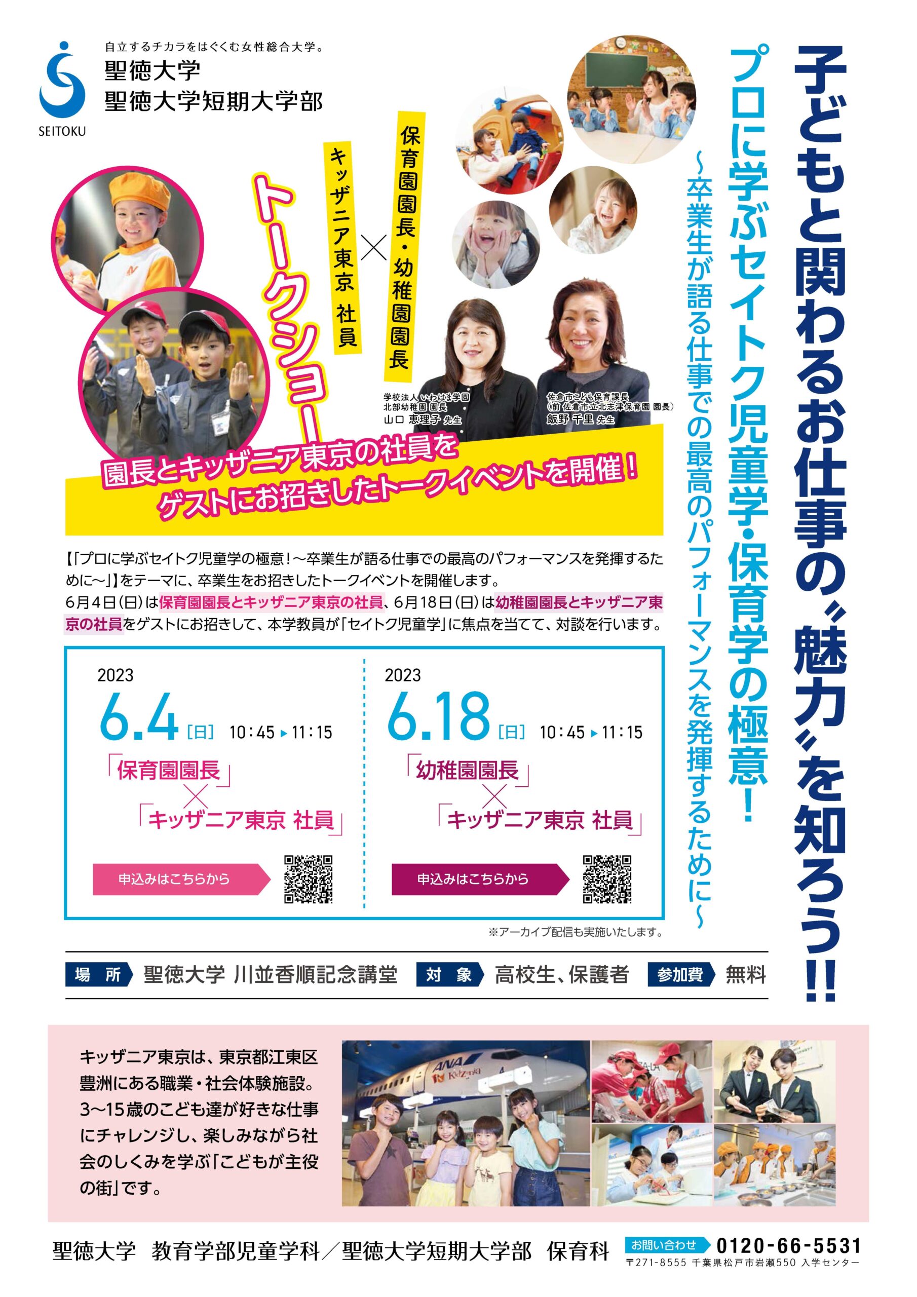 聖徳大学・聖徳大学短期大学部が6/4(日)、6/18(日)に園長とキッザニア東京の社員をゲストに招きトークイベントを開催 — 子どもと関わるお仕事の「魅力」を知ろう —