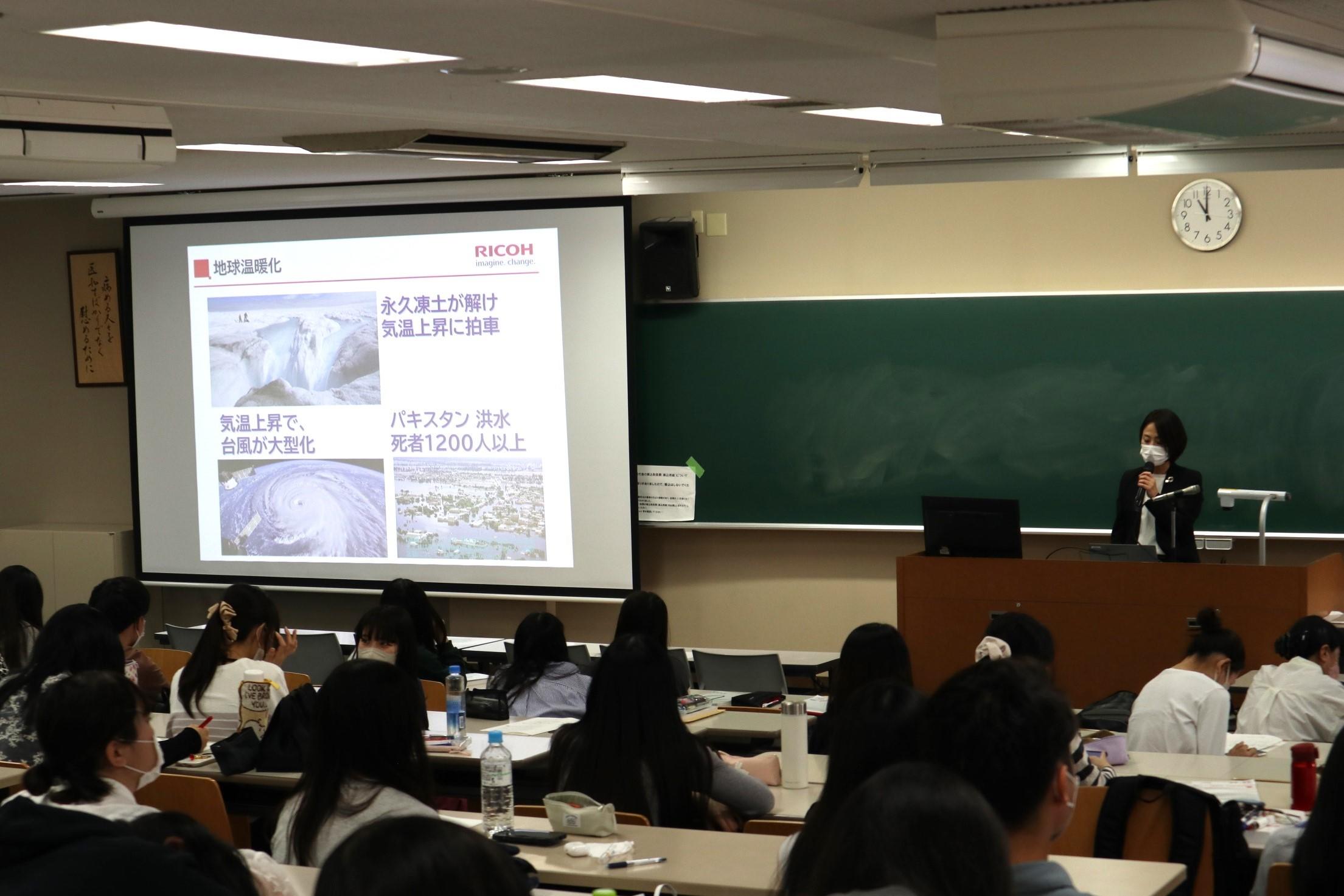講師には、いち早く経営にSDGsを取り入れ、社員様や数多くの大学等に啓発を行ってこられたリコージャパン株式会社様を迎えました。