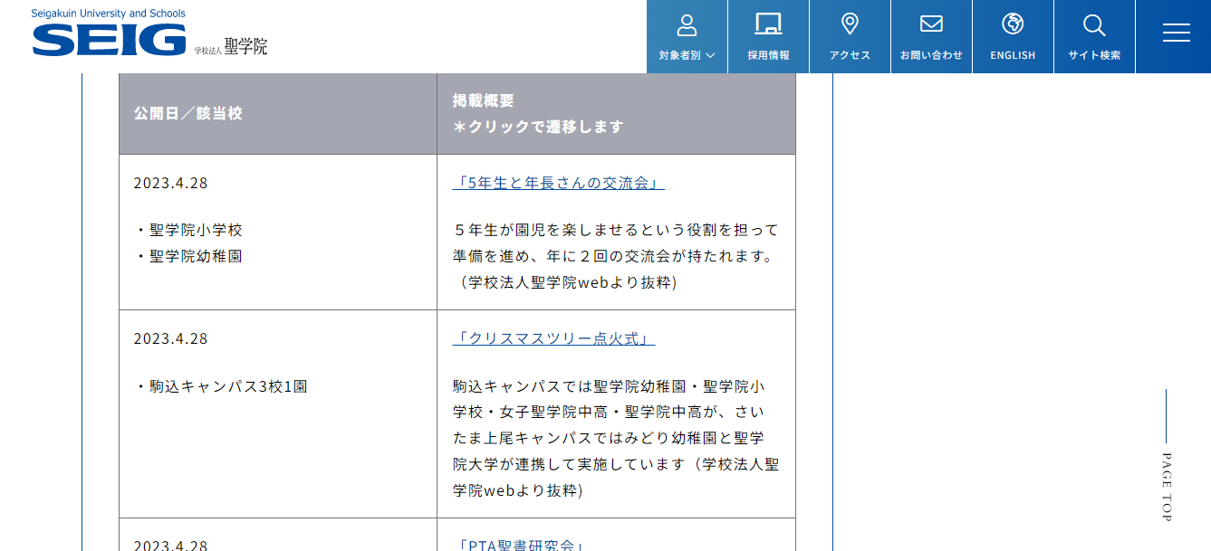学校法人聖学院一貫教育ページを新規オープン~幼稚園から大学院までの一貫教育の取り組みを可視化~