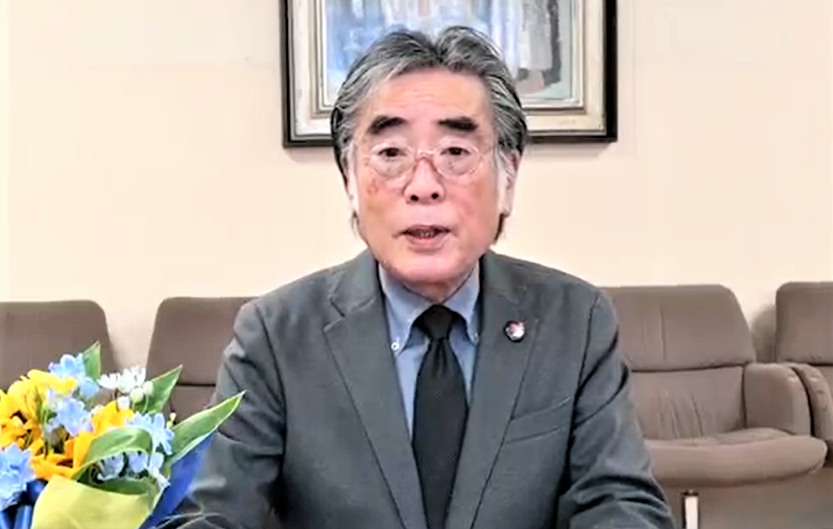 阪本学長は、「日本語・日本文学教育研究室」の開設を祝し、また、対ロシア戦で落命され、この教室で行われる学術発表会議にその名が冠されることとなった、極東および東南アジア言語・文学科の日本語専攻学生の故Horbenko Svyatoslave氏、韓国語教師の故Antipove Denys氏へ哀悼の意を表した。そして、戦火の中でも研究・教育活動を絶やさぬキーウ国立大学へ、幼稚園、初等部、中等部、高等部、大学、大学院からなる青山学院が一体となって寄付を行ったことを報告した。やがて、平和な春が訪れたときに、「日本語・日本文学教育研究室」で行われる、日本語、中国語、韓国語、インドネシア語、ベトナム語の言語、文学、教育分野の学術発表会議が大きく花開き、「世の光」となることを祈念した。