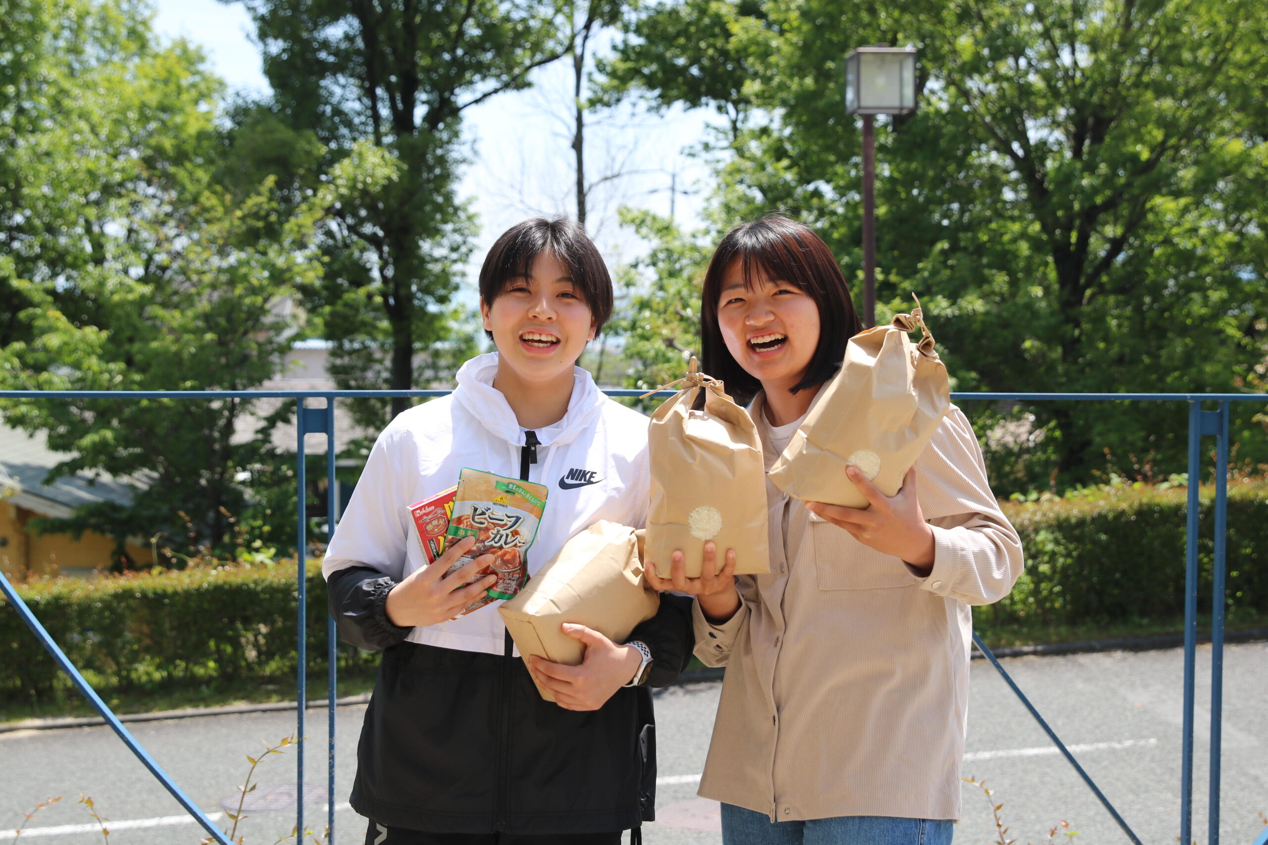 今回配られた食料品は、個包装米3kgとレトルトカレー、レトルトハヤシ、パスタソース、ペンネ。米の提供は、下宿生は自炊していることが多いことや、「県外出身の一人暮らしをする多くの学生に地元比良(※)のことを知ってもらい、より地域とのコミュニティを深めてほしい」という思いから、地元農家に協力を依頼した。経済的に困っている学生や、学業や部活で忙しい学生からは、「ありがたい」「助かった」などの声が聞かれた。