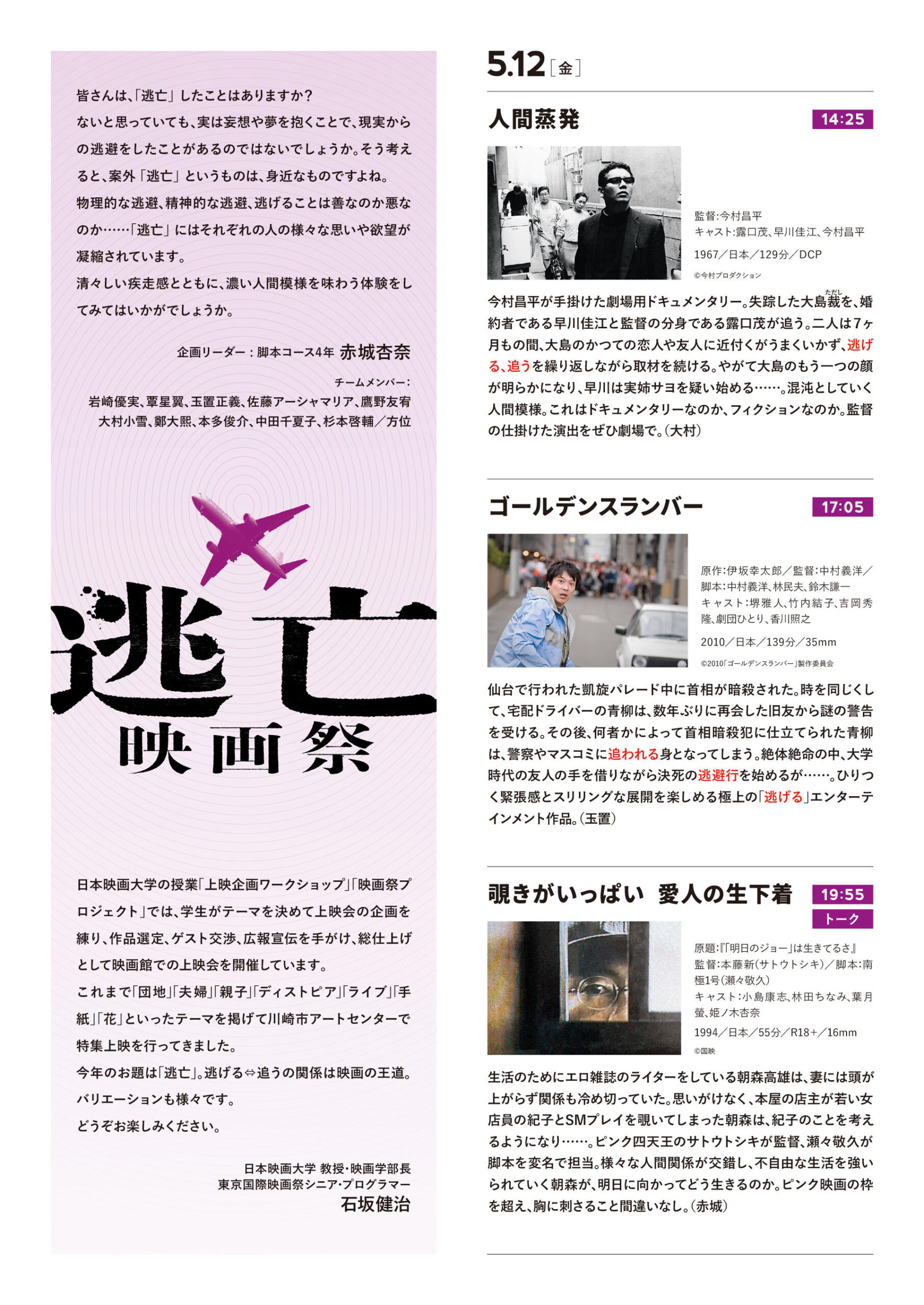 日本映画大学の学生が5月12日~14日まで第8回学生企画上映会「逃亡映画祭」を川崎市アートセンターで開催 — ゲストトークで行定勲監督、外山文治監督、サトウトシキ教授らが登壇