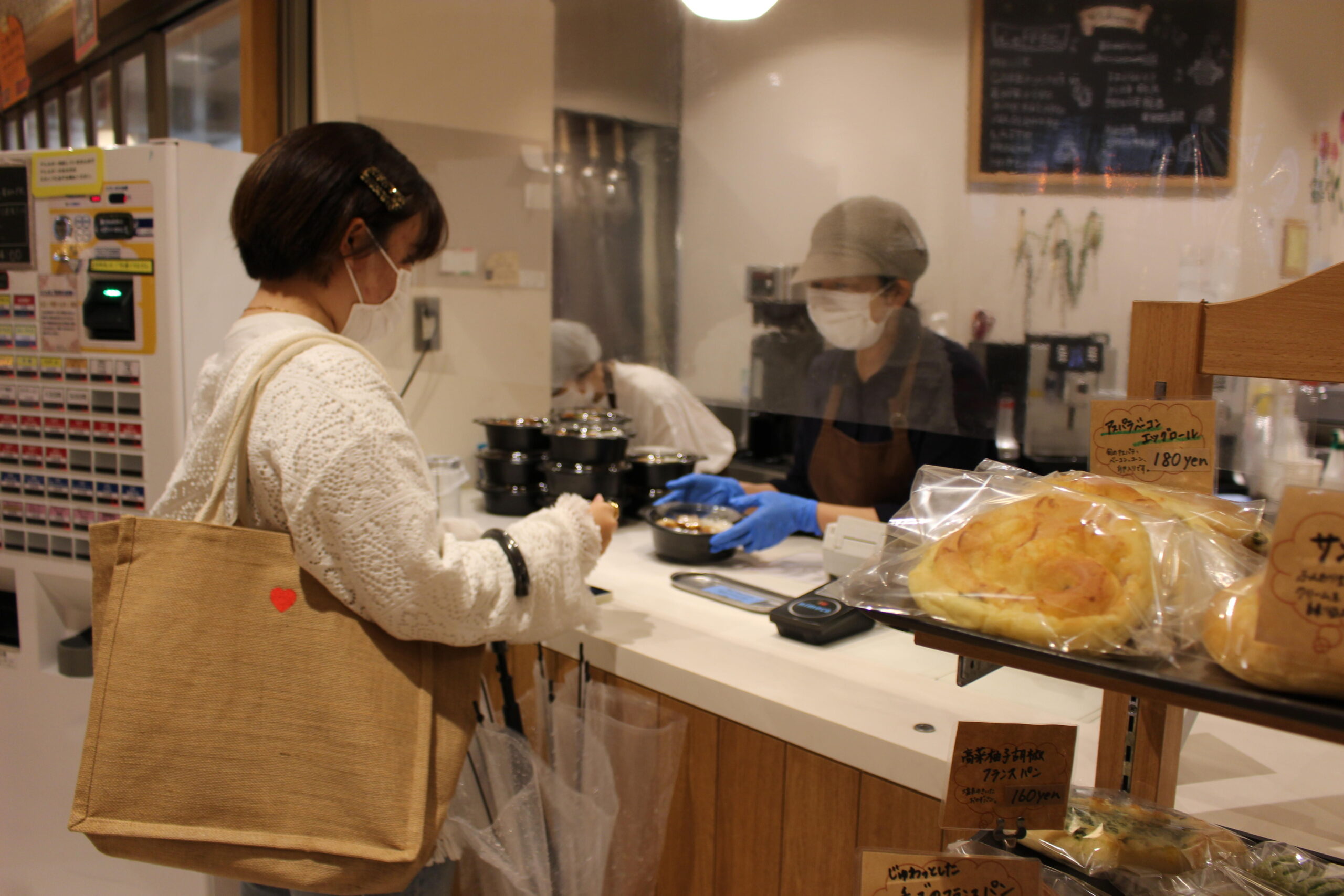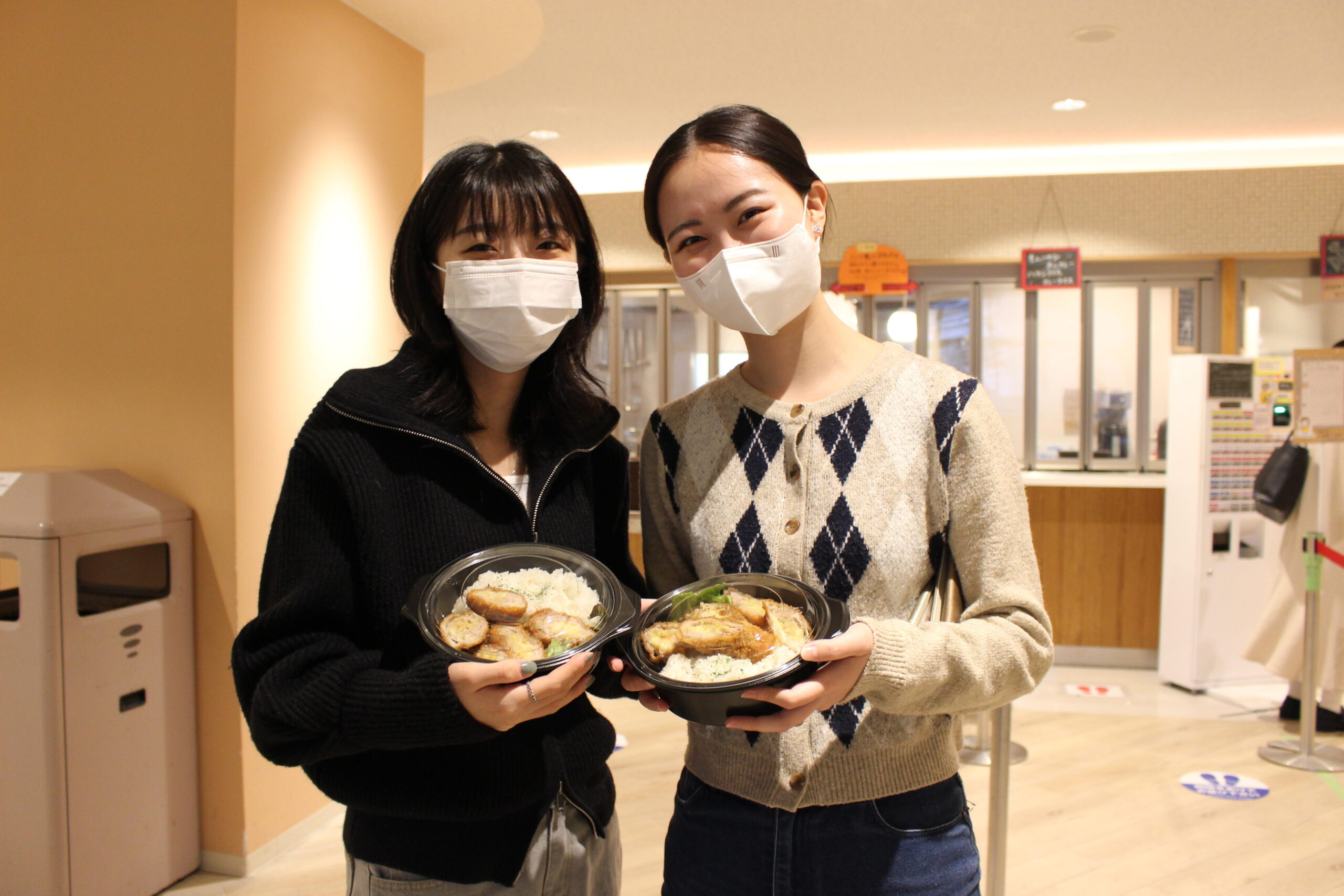 販売は夕方16時前後から、学生の新学期オリエンテーションや授業時間割に合わせた時間帯に設定。夕食はテイクアウトできるようにお弁当箱での販売にし、学生は100円玉と持ち帰る袋、必要であればお箸を持参するというスタイル。