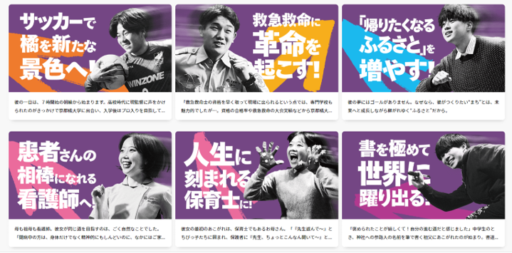 文系・理系、正課・課外活動問わず、”多種多様な分野で挑戦している学生”を取り上げ、自身の夢やその夢に向けた挑戦について取材を行いました。学生の熱い想いが伝わるコンテンツとなっています。