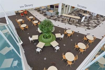新3号館は2023年1月竣工。3階建て、延べ床面積約1万2000平方メートル。「みんなのコモンズ」をテーマに、開放的な空間が広がり、自主活動やプレゼンテーションなどに使えるスペースが多数設けられています。