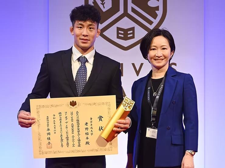 帝京平成大学男子柔道部の老野祐平さんは、3月6日に行われた一般社団法人大学スポーツ協会(UNIVAS)が主催する「UNIVAS AWARDS 2022-23」にて、「マン・オブ・ザ・イヤー最優秀賞」を受賞した。2020年の創部以来3年にわたって主将を務め、2022年全日本学生柔道体重別選手権大会81kg級で優勝を収めたことなどが評価された。