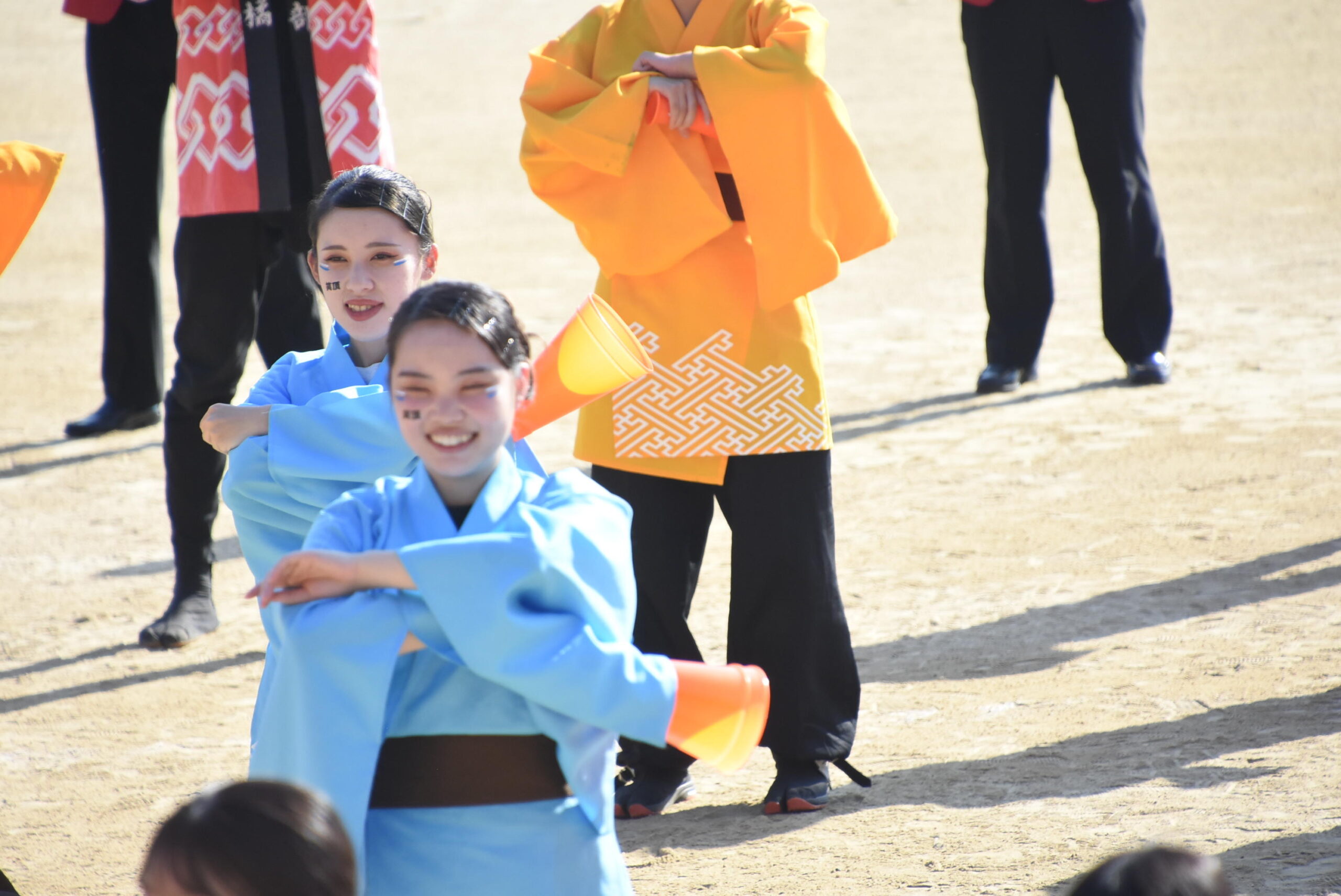 ミュージックビデオの撮影には、応援ソングプロジェクトメンバー、大学京炎そでふれ!部、大学吹奏楽部、高等学校ダンス部、中学校・高等学校太鼓部、一般公募の学生・生徒の総勢152名が参加しました。