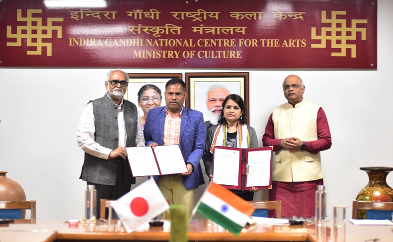調印式には、インド側からインド文化省管轄の外郭団体Indian Council for Cultural Relations(以下 ICCR)のヴィナイ・サハスラブッデ長官、The Indira Gandhi National Centre for the Arts(以下 IGNCA)のS.N.ジョシ事務局長、NMMのアニルバン・ダシュ所長が、大谷大学からはダシュ ショバ ラニ教授(大谷大学所蔵仏教写本研究代表者)が出席。大谷大学も所蔵するインド系写本は、保存にかかる資金的問題、保存技術継承の問題により活動が進まず破損が増えており、各国で保存が急がれている。今後は当該協定に基づき、真宗総合研究所の仏教写本分野における共同研究など、研究交流を促進していく。