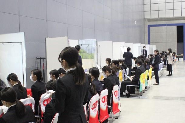 コロナ禍ではWEBによる説明会も多くなっていますが、学生からは企業・団体の生の声を聞きたいという希望も多く、対面での説明を真剣に聞いていました。また、企業・団体の担当者からも、対面で学生に会いたいという声が多かったことから、感染対策に配慮した対面での開催は、企業・団体の担当者からも評価いただき、好評のうちに無事開催することができました。